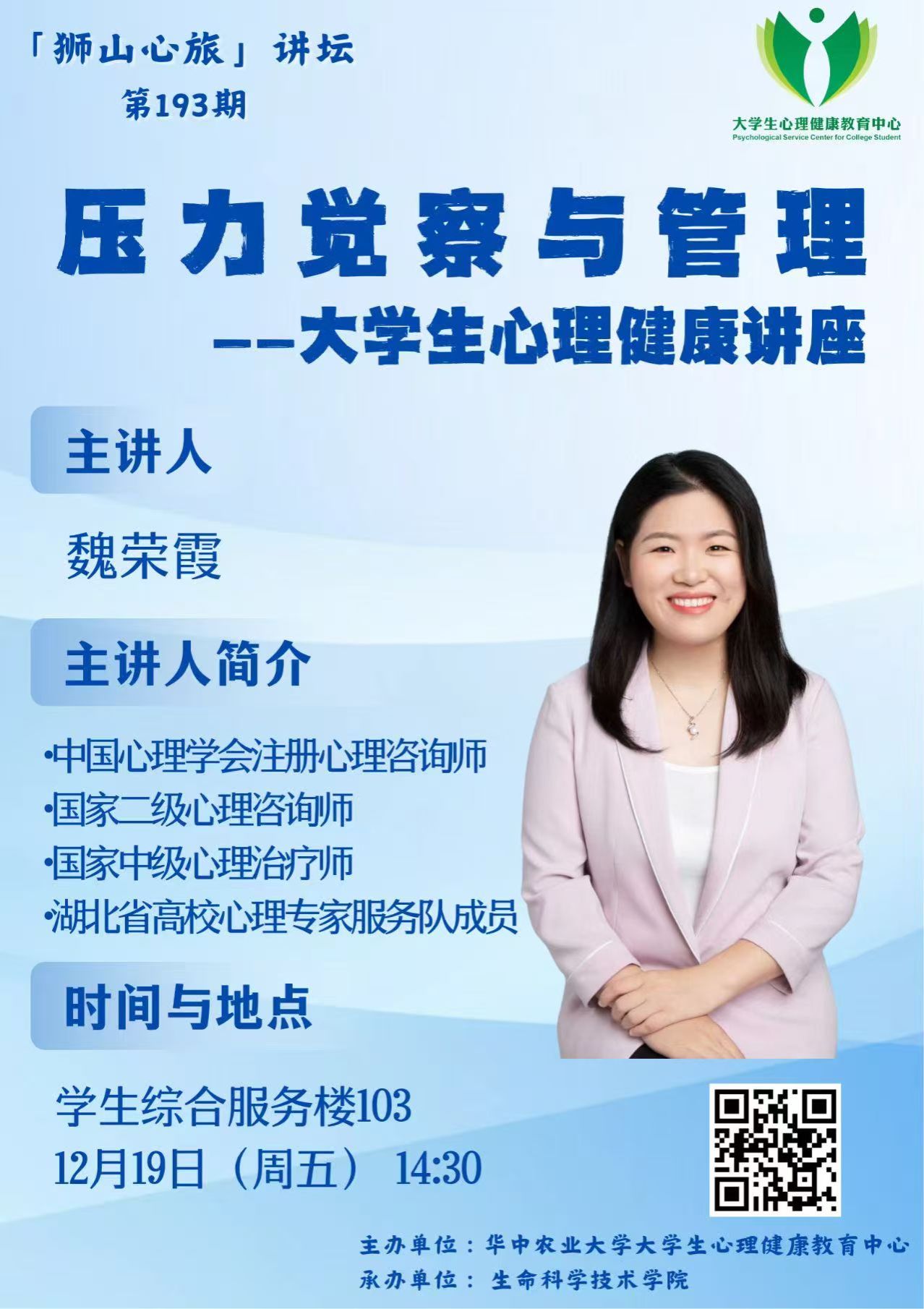 第193期“狮山心旅”系列心理讲坛:压力觉察与管理——大学生心理健康讲座