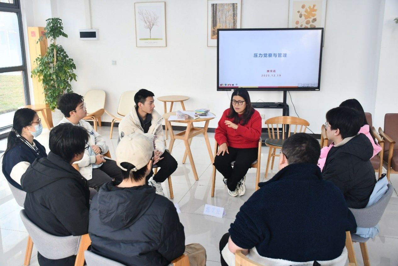 第193期“狮山心旅”讲坛聚焦压力管理, 沉浸式体验助力学生情绪觉察       (通讯员:高文博)12月19日,由大学生心理健康教育中心主办、生命科学技术学院承办的第193期“狮山心旅”讲坛在学生综合服务楼103举行,武汉学院心理健康教育中心主任魏荣霞老师应邀担任主讲,以“压力觉察与管理”为主题,通过理论分享与沉浸式体验结合的形式,为现场同学提供压力调适指导。       活动核心环节为巴林特小组体验。流程规范有序推进:首先由一名参与者陈述自身压力经历,帮助其他成员形成初步认知;随后其他成员围绕事件客观信息提问,... 查看更多