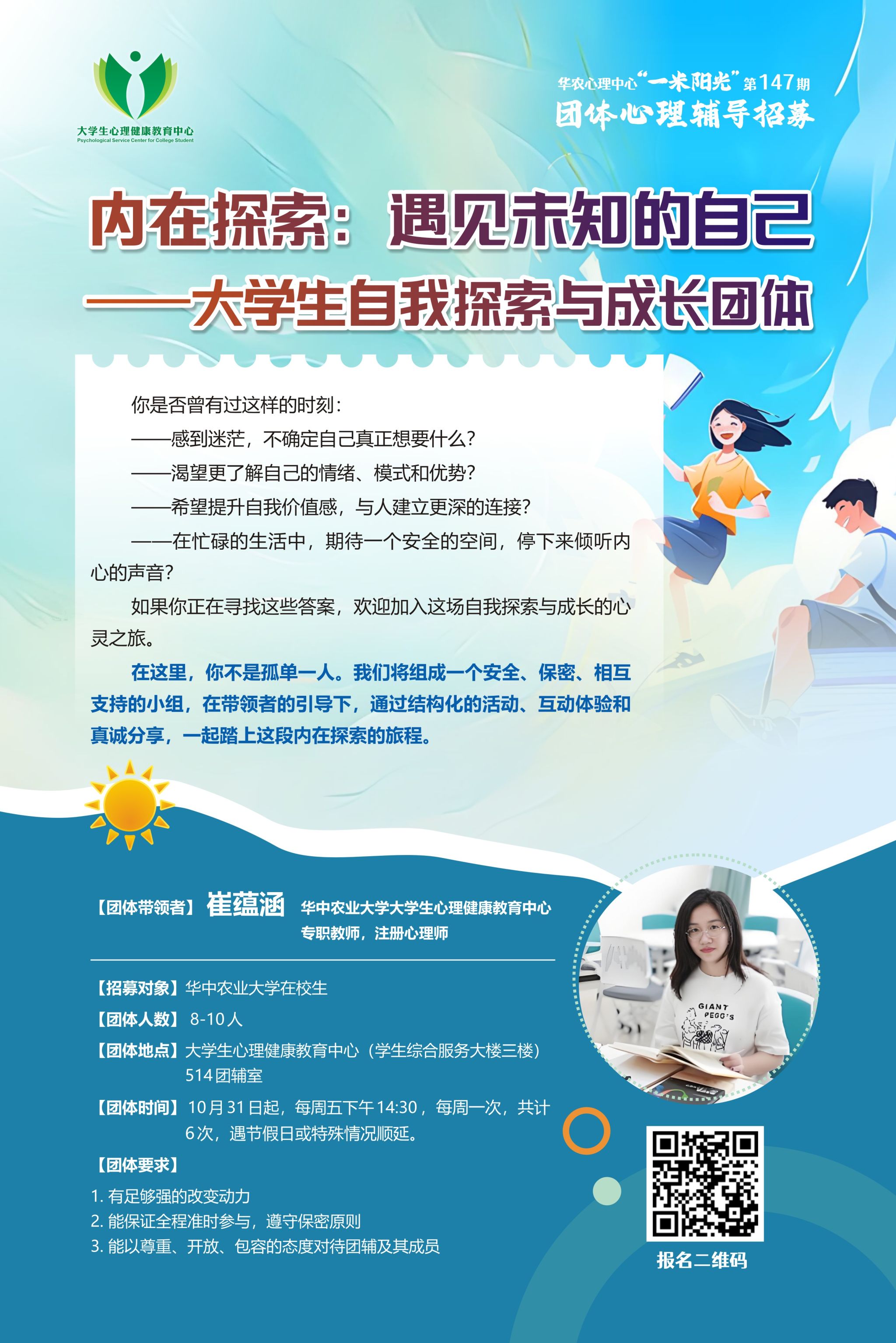 第147期“一米阳光”团体辅导:内在探索:遇见未知的自己——大学生自我探索与成长团体