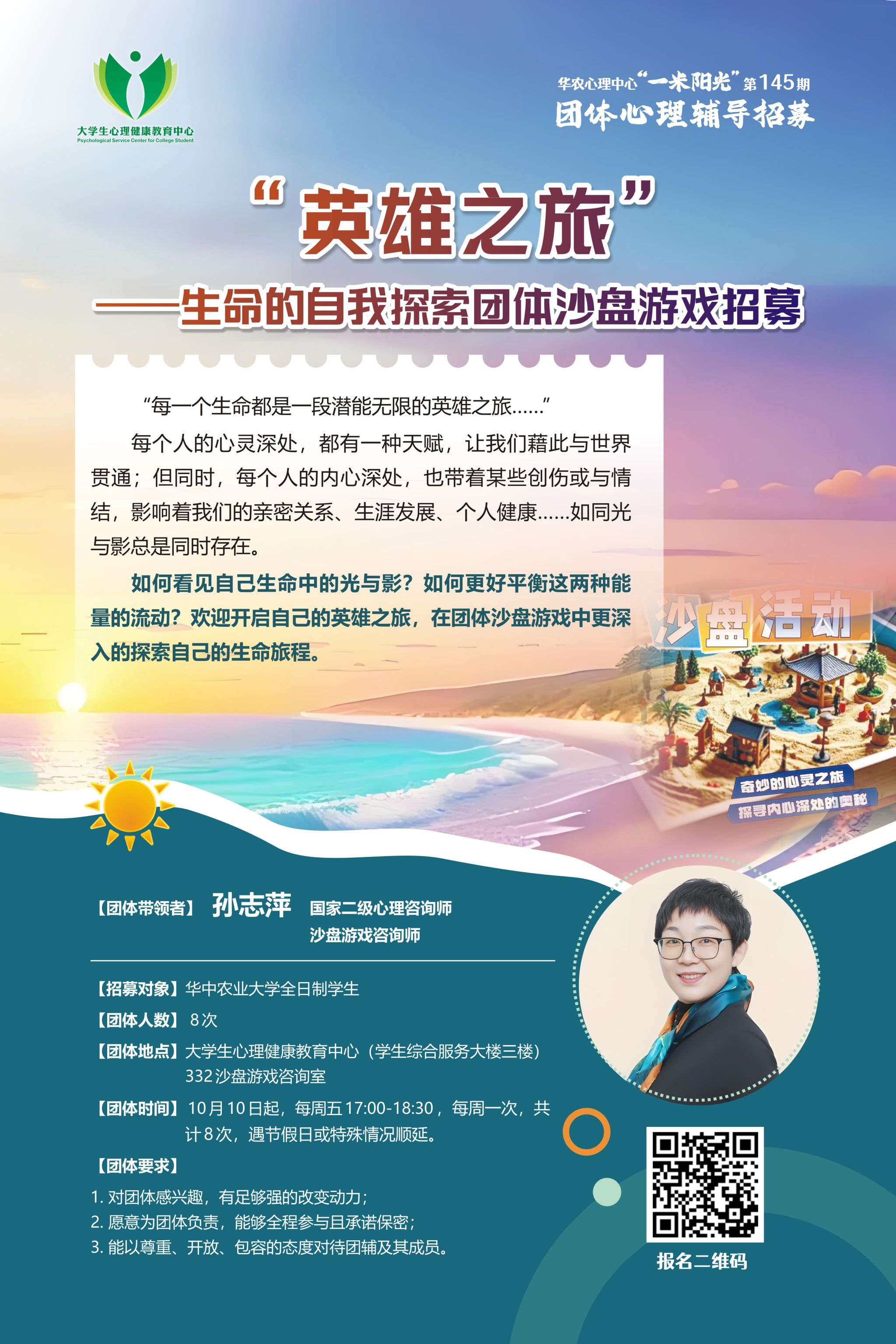 第145期“一米阳光”团体辅导:“英雄之旅”——生命的自我探索团体沙盘游戏招募