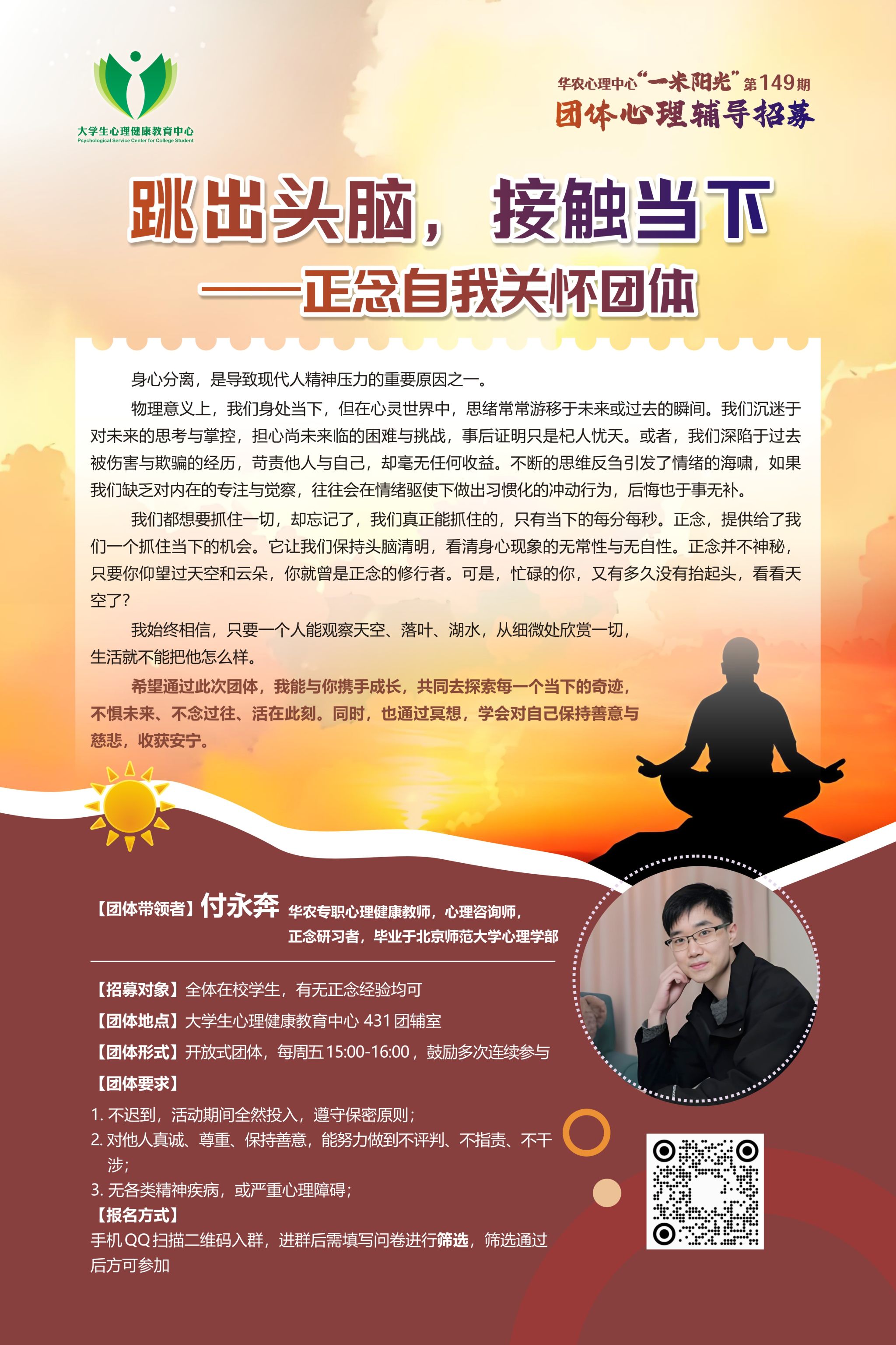 第149期“一米阳光”团体辅导:跳出头脑,接触当下——正念自我关怀团体