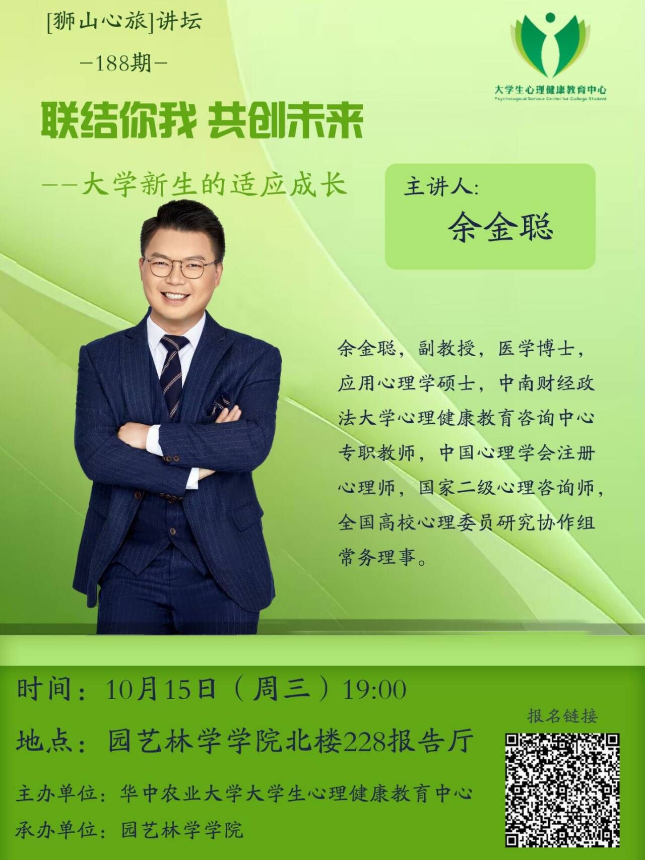 第188期“狮山心旅”系列心理讲坛:联结你我,共创未来——大学新生的适应成长