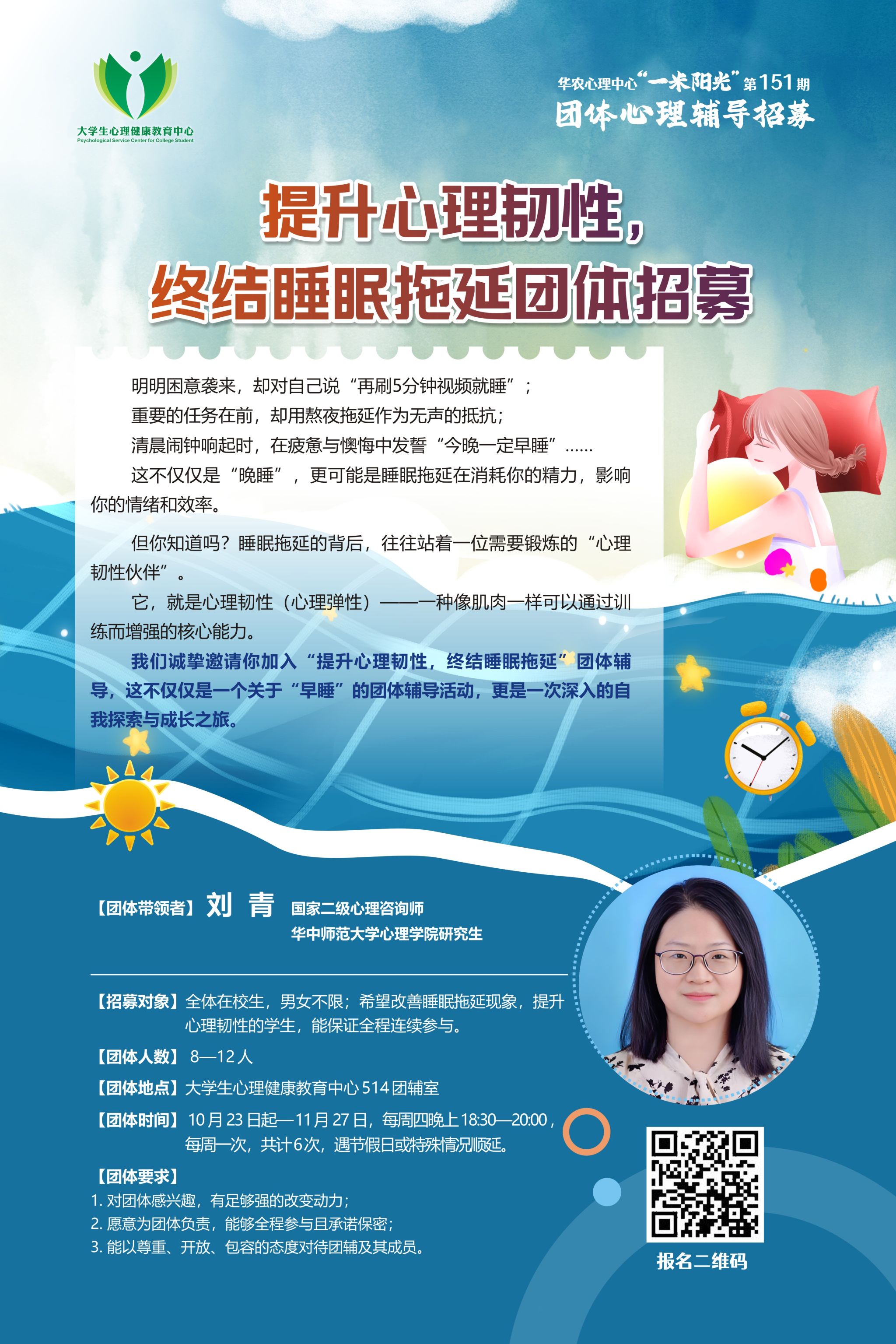 第151期“一米阳光”团体辅导:提升心理韧性,终结睡眠拖延团体招募