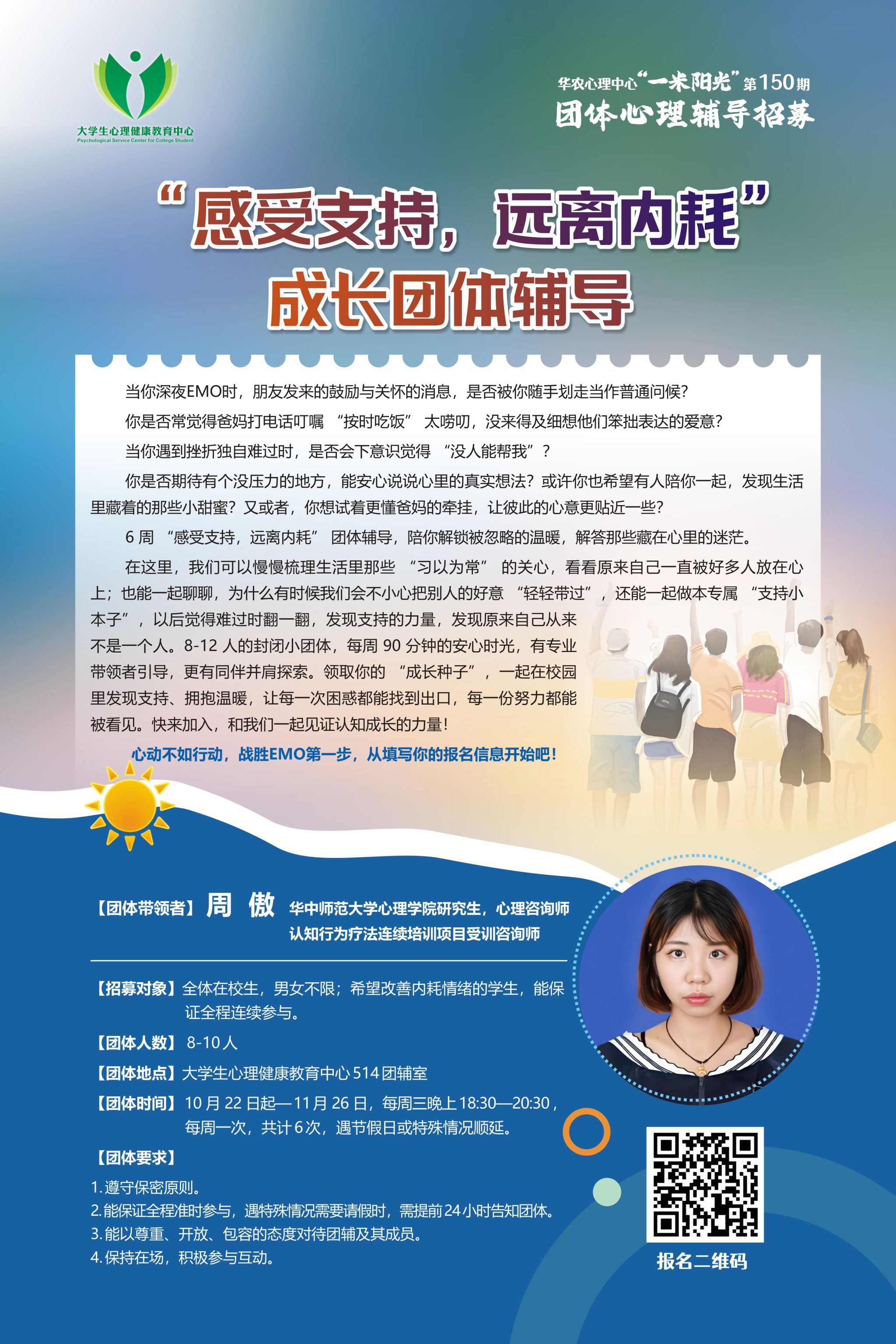 第150期“一米阳光”团体辅导:“感受支持,远离内耗”成长团体辅导