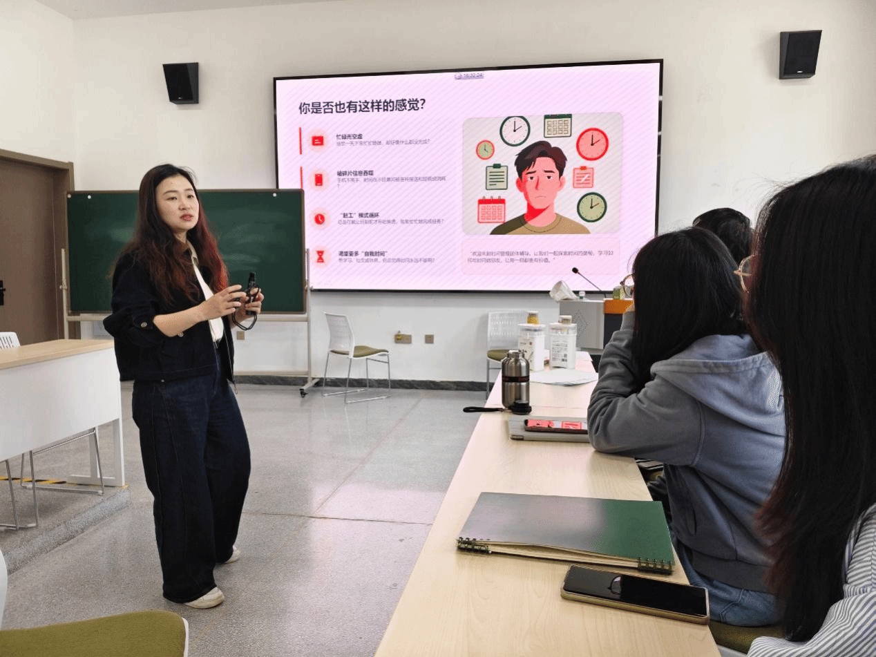 为解决大学生日常学习生活中的实际问题,帮助大家破解时间困境、提升专注力,4月23日下午16:30,以“解锁时间密码,赴努力之约”为主题的时间管理讲座在襄阳书院二教103教室顺利举办。本次讲座特邀湖北文理学院大学生心理健康教育中心副主任、副教授林辰老师主讲,围绕时间感知、合理分配与高效利用等内容,通过沉浸式体验与深度交流,让大家在互动中探寻时间管理的核心密钥。
